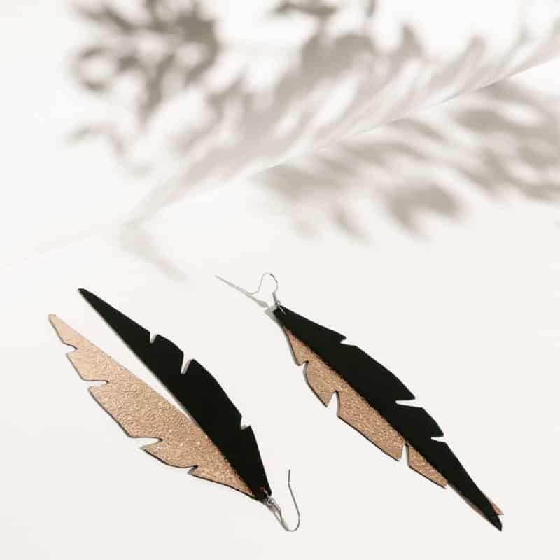 FEATHERS Petite Trio are light-weight and comfortable three-part leather earrings. The airiness of their design and the lightness of the leather make them a comfortable and stylish addition to any look or outfit.